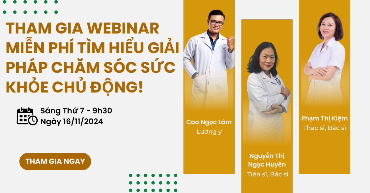 Bạn đang đối mặt với các vấn đề sức khỏe mà chưa tìm ra giải pháp hiệu quả? Buổi webinar này được thiết kế dành riêng cho những người đang gặp khó khăn với các bệnh lý nội tiết, tiêu hóa, xương khớp, hoặc tuần hoàn và đã có kết quả xét nghiệm từ bệnh viện. Nếu bạn cần hiểu rõ hơn về nguyên nhân gốc rễ của bệnh và muốn tìm kiếm phương pháp chăm sóc sức khỏe chủ động, đây chính là chương trình phù hợp nhất dành cho bạn. Tham gia để lắng nghe, học hỏi và nhận lời khuyên trực tiếp từ các chuyên gia hàng đầu trong lĩnh vực Tây y và Đông y.